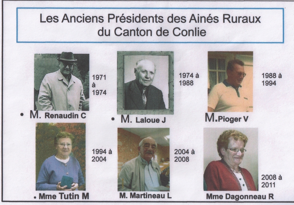 le 22 février 1978 Modification du nom pour : ASSOCIATION DES RETRAITES AGRICOLES ET ASSOCIES DU CANTON DE CONLIE sous la présidence de Monsieur Julien LALOUE
